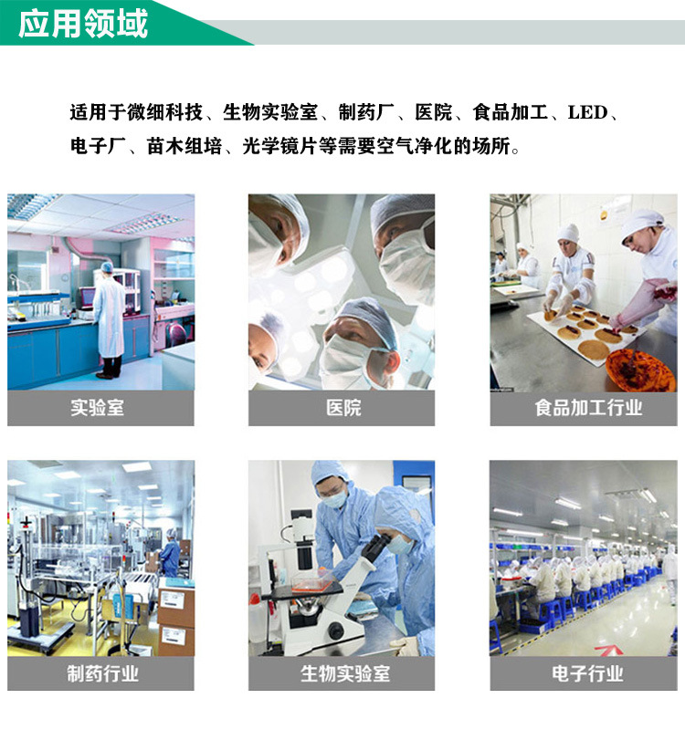 广泛应用于微细科技、生物实验室、制药厂、医院、食品加工业、LCD、电子厂等等一切需要空气净化的场所